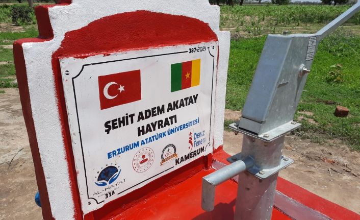 “1000 Şehidimiz İçin 1000 Su Kuyumuz” projesi kapsamında Atatürk Üniversitesinin desteğiyle Kamerun’da açılan su kuyusuna Şehit Adem Akatay’ın adı verildi.