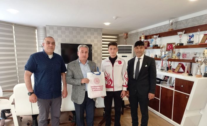 Erzurum Gençlik ve Spor İl Müdürü Fuat Taşkesenligil’i ziyaret etti. Genç boksör başarısını Taşkesenligil, milli boksörü Türkiye Şampiyonluğu için tebrik ederek, Avrupa Şampiyonası öncesinde kendisine başarılar diledi. Taşkesenligil, şampiyon boksöre başarı dileğinde bulundu.