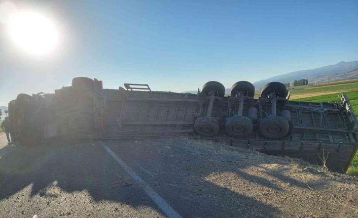 TIR’ın karayolunu trafiğe kapatması nedeniyle trafik bir süre tek şeritten kontrollü olarak sağlanabildi.