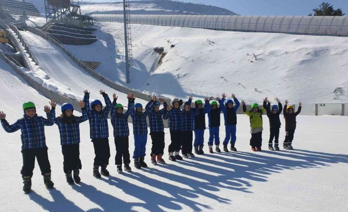 Antrenör Ahmet Aktaş, Uzundereli öğrencilere kayak eğitimi verirken, çalışmaların oldukça keyifli geçtiğini söyledi.
