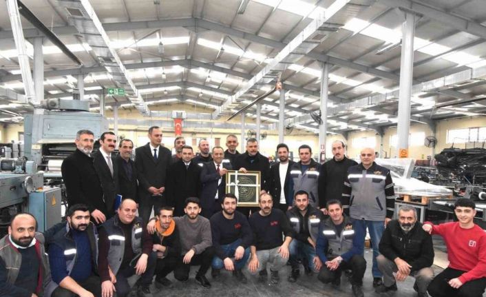 Zafer Medya Yönetim Kurulu Başkanı Metin Barlak, ziyaret anısına Vali Mustafa Çiftçi’ye El- Hakkani Mührü Tablosu hediye etti.