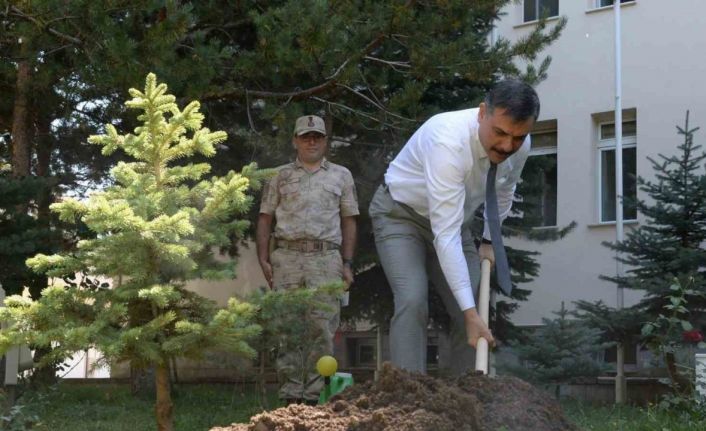 VALİ ÇİFTÇİ JANDARMA İL KOMUTANLIĞINI ZİYARETİNDE FİDAN DİKTİ