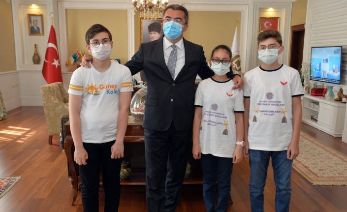Erzurum Valisi Okay Memiş, LGS’de tüm soruları cevaplayıp, 500 tam puan alan Özel Güneş Ortaokul Öğrencisi Yiğit Şakar ve il geneli sıralamasında ilk 20’ye giren öğrencileri makamında kabul etti.