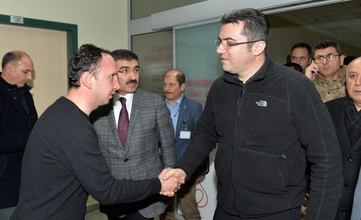 Bölge Eğitim ve Araştırma Hastanesi ile Atatürk Üniversitesi Yakutiye Araştırma Hastaneleri yoğun bakım servisinde yatan yaralıların sağlık durumları hakkında doktorlardan bilgi alan Vali Memiş, yakınlarına geçmiş olsun dileklerini iletti.
