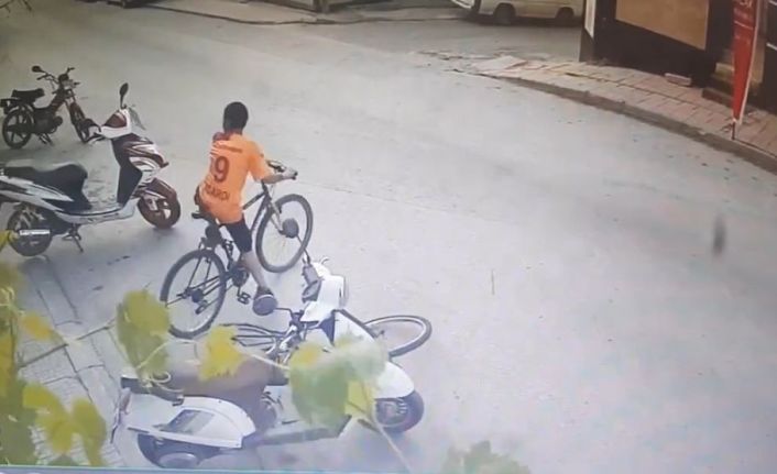 2 bisikletin 40 saniyede çalındığı anlar güvenlik kamerasında