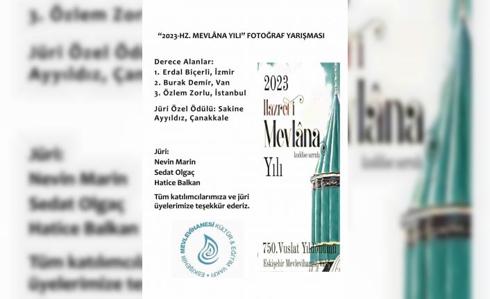 ’2023 Hazreti Mevlana Yılı’ dolayısıyla Eskişehir Mevlevihanesi Kültür ve Eğitim Vakfı tarafından düzenlenen fotoğraf yarışmasına derece alanlar belli oldu.