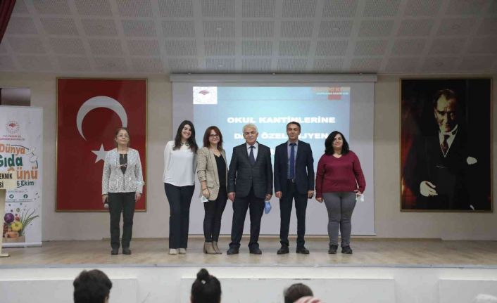 Gıda ve Yem Şube Müdürlüğü’nde görevli Gıda Mühendisi Zuhal Ünal Canbaz tarafından ’Gıda Mevzuatı, 5996 Sayılı Veteriner Hizmetleri Bitki Sağlığı Gıda ve Yem Kanunu, Gıda İşletmelerinin Kayıt ve Onay İşlemlerine Dair Yönetmelik, okul kantinlerine dair özel hijyen kuralları, TGK gıda etiketleme ve tüketicileri bilgilendirme, güvenilir gıda, gıda hijyeni, muhtemel tehlikeler, gıdaların bozulma nedenleri ile ilgili sunum gerçekleştirildi. İkinci kısımda Gıda Mühendisi Ece Dergi tarafından da gıda kaynaklı enfeksiyon ve zehirlenmeler, Milli Eğitim Bakanlığı’na bağlı eğitim ve öğretim kurumlarındaki gıda işletmelerine ait özel hijyen gereklilikleri, personel hijyeni, işletme hijyeni, gıda maddelerinin kullanımı, gıda maddelerinin depolama ve muhafazası, gıdaların hazırlanması ve işlenmesi, gıdanın servisi, satışı ve tüketime sunumu’ konularında bilgilendirme yapıldı.