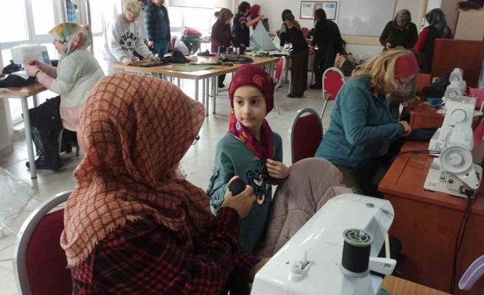 8 Şubat Pazartesi günü Kahramanmaraş’ta 7.7 ve 7.6 büyüklüğündeki depremler 10 ilde büyük yıkımlara neden oldu. Yıkım sonucunda bölge halkına ülke genelinden ve dünyadan gelen yardımlar depremzedelere ulaştırılmaya çalıştırılıyor. Çetin kış şartlarından dolayı bölgedeki vatandaşların ısınması için kışlık kıyafetler önem arz ediyor. Bu önemin bilincinde olan Eskişehirli kadınlar, Tepebaşı Belediyesi’nin Sütlüce Mahallesi İstiklal Caddesi’nde bulunan 2 Eylül Gençlik Merkezi’nde kışlık kıyafet dikimi gerçekleştiriliyor. Toplam 20 kadının dikim yaptığı merkezde Nihal Aksoy’un 7 yaşındaki kızı dikkat çekiyor. Zeynep Elzem Aksoy isimli minik kız annesinin yanında merkeze gelerek, depremzede kardeşlerine gidecek yardımlar için gün boyunca çalışıyor. Dikiş yapan ablalarına ip getiren Zeynep’in annesi Nihal Aksoy, “Ben kızma evde kalmasını, kendimin depremzedelere giyecek dikeceğimi söylediğimde, o da gelmek isteğini söyledi. Ben de depremzede de etkilenen kardeşlerine destek olmak istediğini söyledi. Ben ilk başta kabul etmek istemedim. Ama ısrar edince abileri getirdiler buraya. Bize burada elinden geldiğince yardım ediyor. Yerleri süpürüyor, dikiş yapanlara ip getiriyor” diye konuşarak kızının azminden bahsetti.