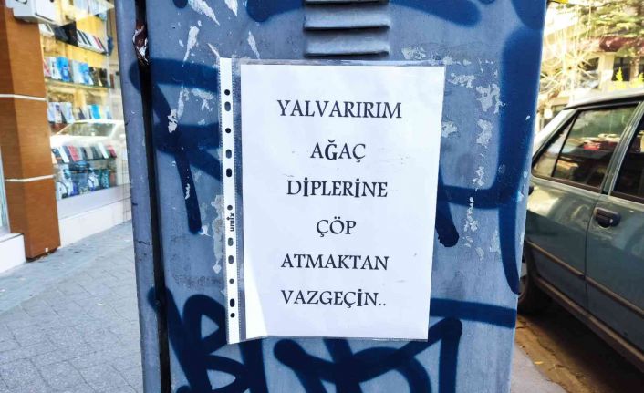Eskişehir’in Şair Fuzuli Caddesi’nde ağaçların diplerine çöp atıldığını gören bir vatandaş, çevre kirliliğinin önlenmesi amacıyla farklı bir çalışmaya imza attı. Kaldırım üzerinde bulunan elektrik trafosuna "yalvarırım ağaç diplerine çöp atmayın" yazılı bir kağıt yapıştıran vatandaş, duyarsızca çöp atanların dikkatini çekmeye çalıştı. Bütün çabasına rağmen zaman zaman ağaç diplerine atılan çöpler dikkat çekti. Genellikle sigara izmaritlerinin bulunduğu çöp poşetleri ve karton kutuların ağaç diplerine atıldığı görüldü.