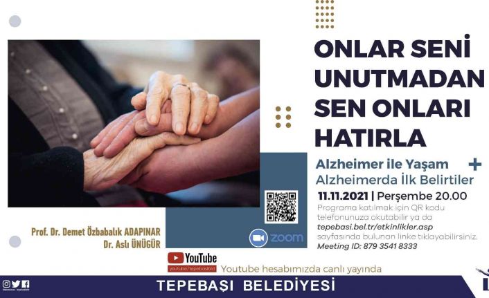 Tepebaşı Belediyesi, Alzheimer konusunda farklı disiplinden uzmanlar ve hasta yakınlarının katılımı ile “Onlar Seni Unutmadan Sen Onları Hatırla” başlıklı söyleşiyi, vatandaşlar ile buluşturmaya devam ediyor. Online olarak düzenlenen söyleşide Eskişehir Alzheimer Derneği Başkanı Prof. Dr. Demet Özbabalık Adapınar ve Dr. Aslı Ünügür bu hafta, alzheimerda ilk belirtiler konusunu işleyecek. Programda her hafta olduğu gibi katılımcılardan gelen sorular da yanıtlanacak. Etkinlik, Tepebaşı Belediyesi’nin “tepebasibld” adlı Youtube kanalından ve Zoom üzerinden (meeting ID: 879 3541 8333) canlı olarak izlenebilecek. 11 Kasım Perşembe günü saat 20.00’de gerçekleştirilecek programa, “tepebasi.bel.tr/etkinlikler.asp” sayfasında bulunan linkten de ulaşılabilecek.