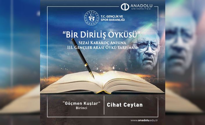 Gençlik ve Spor Bakanlığı tarafından düzenlenen 3. Gençler Arası Öykü Yarışması sonuçları açıklandı. Sezai Karakoç anısına “Bir Diriliş Öyküsü” temasıyla gerçekleştirilen yarışmada Anadolu Üniversitesi öğrencisi büyük başarı gösterdi. Anadolu Üniversitesi İletişim Bilimleri Fakültesi Basın ve Yayın Bölümü öğrencisi Cihat Ceylan yazdığı öykü ile 3. Gençler Arası Öykü yarışmasında birinci oldu. Yarışma sonucuna göre dereceye giren isimler düzenlenecek olan törenle ödüllerini Gençlik ve Spor Bakanı Dr. Mehmet Kasapoğlu’ndan alacak.