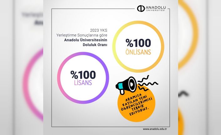 ÖSYM tarafından yayınlanarak web sayfasında ilan edilen 2023 YKS Yerleştirme Sonuçları’na göre, Anadolu Üniversitesi örgün lisans ve ön lisans programlarının kontenjan doluluk oranları yüzde 100 ile rekor kırdı. Açıköğretim Sistemi programları da aynı şekilde yüzde 100 doluluk oranına ulaştı. YÖK tarafından sunulan ek kontenjanlar ile birlikte doluluk oranı ise yüzde 100’ü aştı.