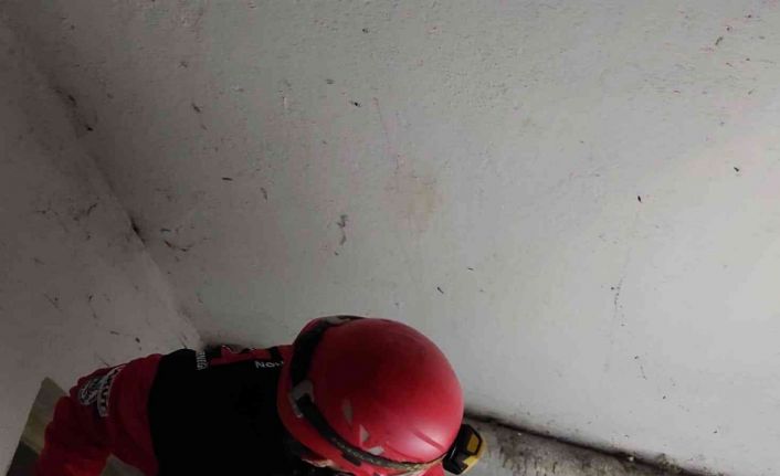Apartman boşluğunda mahsur kalan kediyi AKUT ekibi kurtardı