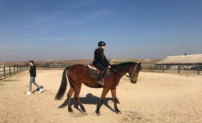 Eskişehir’de ara tatil uygulamasını değerlendirmek isteyen öğrenciler, at binerek keyifli vakit geçirdi.