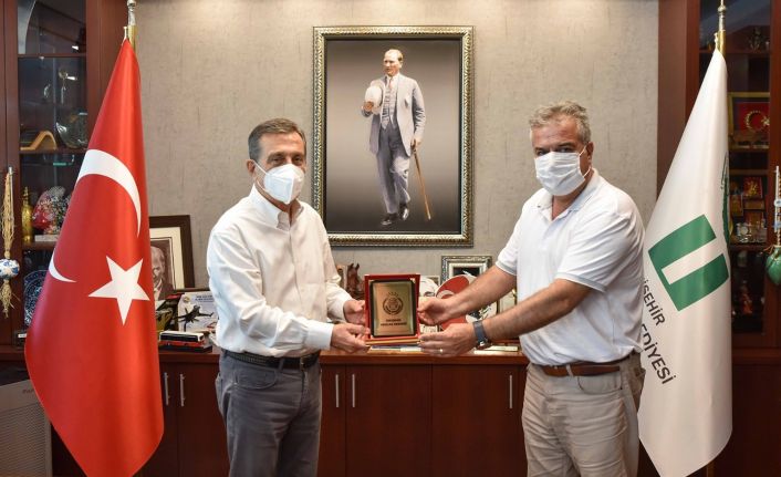 Ziyaret sonunda Kaya, Başkan Ataç’a teşekkür plaketi takdim etti.