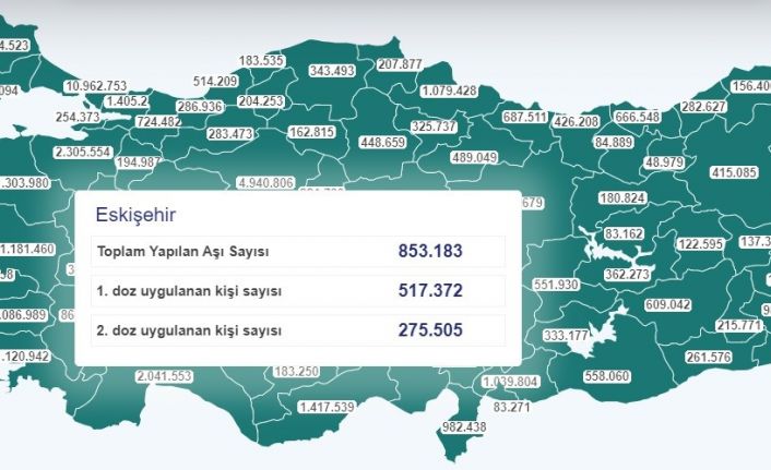 Ülke genelinde aşılama çalışmaları tüm hızla devam ediyor. Sağlık Bakanı Koca, öğle saatlerinde resmi sosyal medya hesabından yaptığı bir paylaşımda, “60 Milyon dozu geçtik. Milyon doz sayısı arttıkça bağışıklığa çok daha yakınız” dedi. Bakan Koca bu paylaşım yaparken, Eskişehir’de de yapılan aşı sayısında yeni bir rekora adım attığı görüldü. Bugün Eskişehir’de yapılan aşı sayısı 853 bin 183’ ulaştı. İlk doz aşı olan vatandaş sayısı 517 bin 372 iken, ikinci doz aşı uygulanan kişi sayısı 275 bin 505 olarak gerçekleşti.