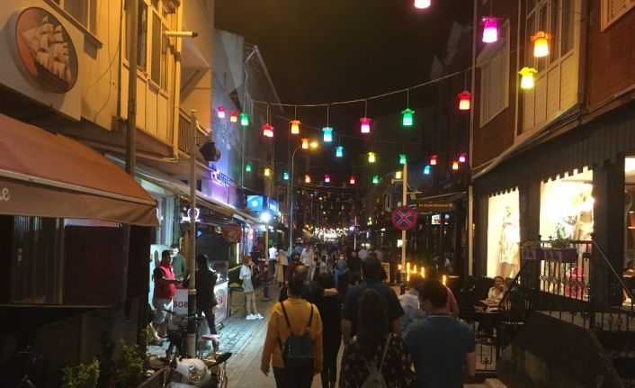 Eskişehir’de eğlence merkezlerinin yoğun olduğu sokakta vatandaşların korona virüs tedbirlerine uymaması dikkat çekti.