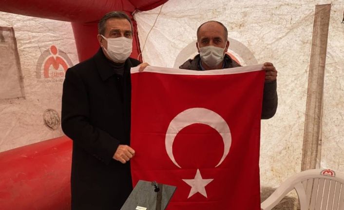 Başkan Ataç aileye Türk Bayrağı takdim ederken şehidimizin yakınları da Başkan Ataç’a ziyaretinden ötürü teşekkürlerini iletti.