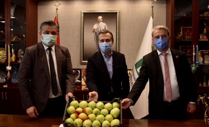 Çanakkaleli konuklar, Başkan Ataç’a kooperatif bünyesinde üretilen elmalardan hediye etti. Başkan Ataç da misafirlerine, “Eskişehir: Kökleri Derinde Yepyeni Bir Şehir” kitabını armağan etti.