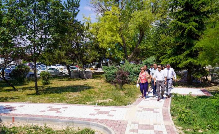 Yenileme çalışmalarının sona geldiği parktaki incelemede Başkan Ataç’a Başkan Yardımcısı Nuray Çayır da eşlik etti.