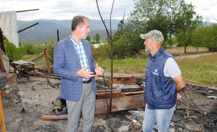 Olay, Sarıcakaya ilçesine bağlı Beyköy Mahallesi’nde geçen hafta meydana gelmişti. Mevsimlik tarım işçisi Musa Yılmaz’ın çadırında, elektrik kontağından çıkan yangında çadır ve park halinde bulunan kamyonet kullanılamaz hale gelmişti. Olayda yaralanan Musa Yılmaz ise 112 Acil Sağlık ekipleri tarafından kaldırıldığı Eskişehir Şehir Hastanesi’nde tedavi altına alınmıştı. Sarıcakaya Belediye Başkanı Hüseyin Çam, yangının yaşandığı alana giderek geçmiş olsun ziyaretinde bulundu. Mevsimlik tarım işçisi aileyle bir araya gelen Çam, olay yerinde de incelemeler yaptı.