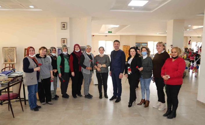 Ayrıca Başkan Yüzügüllü, Sivrihisar Belediyesi Sanat Atölyelerinde eğitim gören kadınların 8 Mart Dünya Kadınlar Günü’nü kutlayarak karanfil hediye etti.