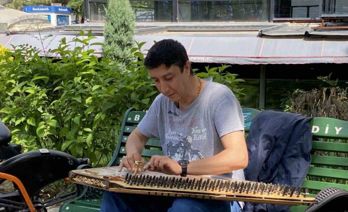 Eskişehir’de bayram tatilinde ’kanun’ isimli enstrümanıyla vatandaşları sokak sanatı ile buluşturan bir müzisyen ilgi çekti.