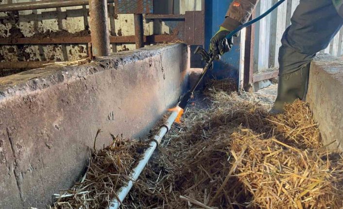 Eskişehir’de eksi seviyelerde seyreden hava sıcakları sebebi ile su şebekeleri donan besiciler hayvanlarını sulayabilmek için buzla kaptı boruları ısıtmaya çalışıyor.