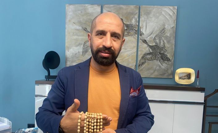 Nesli tükenmiş fil grubundan olan mamutun binlerce yıllık fosilleşmiş dişinden yapılan tespih görenleri hayran bırakıyor.