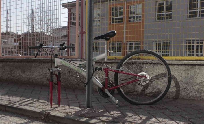 Eskişehir’de kilidinin kesilemediği düşünülen, sadece ön tekeri çalınan bisiklet görenleri şaşırttı.