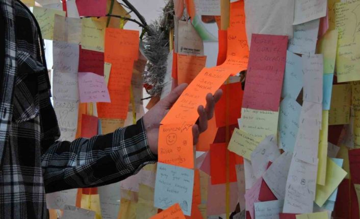 Bu ağaç müşterilerin bıraktığı notlarla yeşeriyor