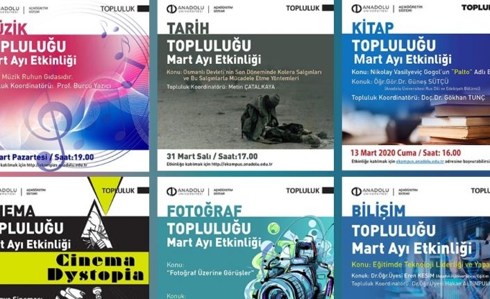 Aktif olarak öğrenimine devam eden 1 milyonun üzerindeki Açıköğretim öğrencisine en iyi hizmeti sunmak için sürekli kendini geliştiren Anadolu Üniversitesi, öğrenim ortamlarının yanında sosyal alanlar da yaratıyor. Açıköğretim Sistemi’ne kayıtlı öğrencilerin, farklı alanlarda sosyalleşebilmeleri için faaliyet gösteren “Çevrimiçi Öğrenci Toplulukları” ile on binlerce öğrenci online olarak aynı etkinliklere katılabiliyor. Yaklaşık 60 dakika boyunca alanında uzman isimlerin öğrencilerle buluştuğu etkinlikler, önceden internet sitesinden duyuruluyor. Ayrıca öğrenciler, oluşturulan tartışma platformu sayesinde etkinlik süresince birbirleriyle ve konuklarla etkileşime girebiliyor. Düzenlenen tüm etkinlikler, kaçıranlar için sisteme video olarak yükleniyor. Gerçekleştirilen tüm etkinlikler https://ekampus.anadolu.edu.tr adresi üzerinden takip edilebiliyor.