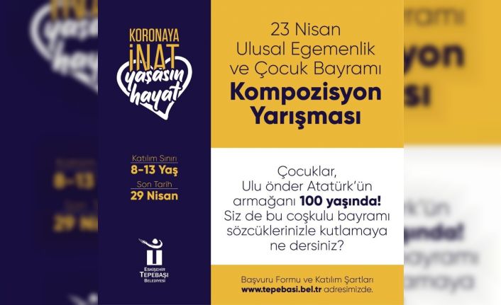 Tepebaşı Belediyesi, 23 Nisan Ulusal Egemenlik ve Çocuk Bayramı’ndan dolayı “Koronaya inat yaşasın hayat” sloganıyla özel bir etkinlik gerçekleştiriyor. Düzenlenen kompozisyon yarışmasında çocuklar, yazdıkları kompozisyon ve şiirlerde sözcükler ile Mustafa Kemal Atatürk sevgisini ve 23 Nisan coşkusunu anlatacak. 8-13 yaş arasındaki çocukların katılabileceği yarışma için son katılım tarihi ise 29 Nisan olarak belirlendi.