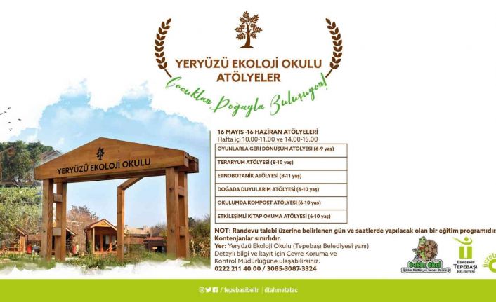 Tepebaşı Belediyesi Hizmet Binası yanında hazırlanan alanda faaliyetlerini gerçekleştiren Yeryüzü Ekoloji Okulu; doğayla ilişki kurmayı, doğaya erişimi, bir arada yaşama kültürünü, sürdürebilirliği, yerel ekosistemle oynamayı, toplumsal aktivizmi, mekanı tanımayı ve mekan bilincini ön plana çıkarmayı amaçlıyor. Yeryüzü Ekoloji Okulu’nda düzenlenen yeni dönem atölye çalışmaları arasında; 6-9 yaş için Oyunlarla Geri Dönüşüm Atölyesi, 8-10 yaş için Teraryum Atölyesi, 6-10 yaş için Doğada Duyularım Atölyesi, Okulumda Kompost Atölyesi, Etkileşimli Kitap Okuma Atölyesi ve Etnobotanik Atölyesi yer alıyor. Atölyeler 16 Mayıs-16 Haziran 2022 tarihlerinde, hafta içi saat 10.00-11.00 ve 14.00-15.00 saatleri arasında gerçekleştirilecek. Ayrıca okullar da Tepebaşı Belediyesi ile iletişime geçerek gruplar halinde atölye çalışmalarına katılabiliyor.