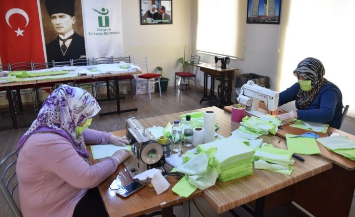Kadınların hazırladıkları maskeler, pamuklu kumaştan üretiliyor ve yıkanarak yeniden kullanılabiliyor. Tepebaşı Belediyesi yetkilileri de ihtiyaç dahilinde maske üretiminin devam edeceğini belirtiyor.