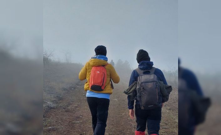 Eskişehirli doğa tutkunları sis eşliğinde 12 kilometrelik Kent Ormanı parkurunda yürüyüş yaptı.