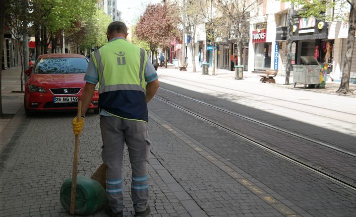Tam kapanma kararlarının uygulandığı ilk gün boş kalan Doktorlar Caddesi, Tepebaşı Belediyesi Temizlik İşleri Müdürlüğüne bağlı ekiplerce temizlendi.