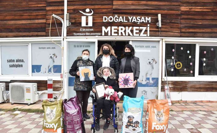 Eskişehir Tepebaşı Belediyesi Doğal Yaşam Merkezi, çok anlamlı bir bağışı daha sokak hayvanları adına kabul etti. Eda Öztürk, kişisel sergisi Fırçamdaki Coşkulu İzler’den elde ettiği gelir ile aldığı mamaları, merkez yetkililerine teslim etti. Ataksi telenjiektazi hastası 13 yaşındaki Öztürk’ün elinden çıkan 24 eserden elde edilen gelir, sokak hayvanlarının karnını doyurmasına destek oldu. Mama teslimini annesi Gülşen Öztürk ve Boyalı Parmaklar kurucusu Sema Şirvan ile birlikte gerçekleştiren Eda Öztürk, “Sanat sadece fırça ile yapılmaz, coşkulu bir yürek de ister” dedi.
