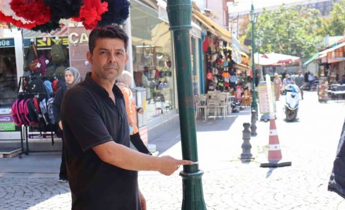Eskişehir’de işletmesinin önündeki elektrik direğine Türk bayrağı asan esnaf, belediye zabıta ekiplerinin sözlü uyarısına şaşırdığını anlattı.