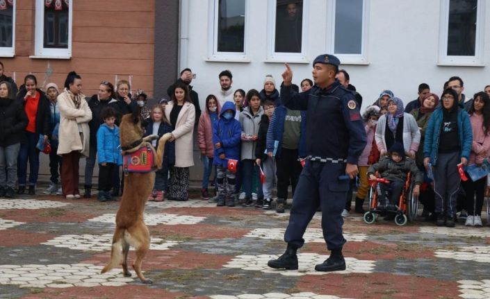 Eskişehir’de Dünya Engelliler Günü çerçevesinde jandarma ekipleri ile engelli öğrencilerin bir araya geldiği programda eğitimli köpekler gösteri yaptı.