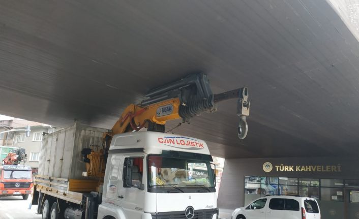 Eskişehir’de, köprü altından geçmeye çalışırken sıkışan vinç, bulunduğu yerden geri geri giderek çıkabilirken, hasar gören köprü Odunpazarı Belediyesi ekiplerince onarıldı.