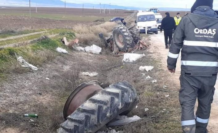 Edinilen bilgilere göre olay, Eskişehir Alpu Mihalıççık karayolunun 42. kilometresinde yaşandı. Alpu’dan Mihalıççık istikametine seyir halinde olan Ekrem K. (72) idaresindeki traktöre, aynı istikamette ilerlemekte olan Yasin G. (30) yönetimindeki ticari araç arkadan çarptı. Çarpması etkisiyle her iki aracın da büyük hasar görüp şarampole düşmesi sonucunda sürücüler yaralandı. Olay yerine gelen sağlık görevlileri tarafından ambulansla Alpu İlçe Devlet Hastanesine kaldırılan yaralılardan, hayati tehlikesi bulunan traktör sürücüsü Ekrem K., Eskişehir Şehir Hastanesine sevk edildi.