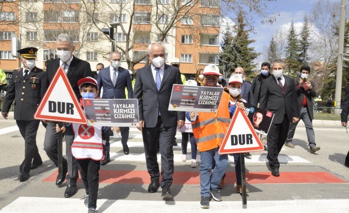 İçişleri Bakanlığı ve Valilikler tarafından ‘Yayalar Kırmızı Çizgimiz’ sloganıyla halka duyurulan ‘Yaya Önceliği Kırmızı Çizgimizdir’ projesi kapsamında 81 ilde yaya geçidini kırmızıya boyama çalışmaları Eskişehir’de de İçişleri Bakanı Yardımcısı Mehmet Ersoy’un katılımıyla gerçekleşti.