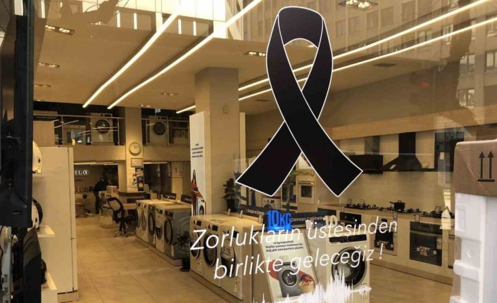 Kahramanmaraş’ta meydana gelen depremler sonrasında Eskişehir’de esnaf dükkanlarına siyah kurdele yapıştırdı.