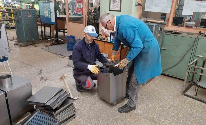 Eskişehir Turgut Reis Mesleki ve Teknik Anadolu Lisesi atölyelerinde deprem bölgesine gönderilmek üzere çadır sobası üretimine başlandı.
