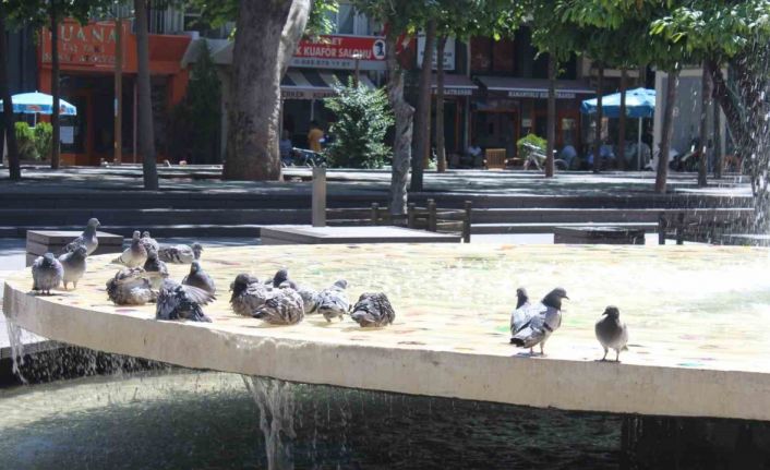 Eskişehir’de sıcak havalar nedeniyle süs havuzlarında serinleyen güvercinler ilginç görüntüler oluşturdu.