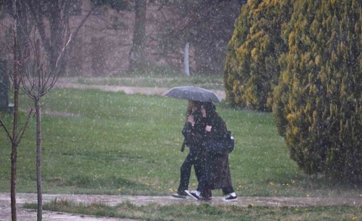 Eskişehir’de yağmur bastırdı, öğrenciler şemsiyelere sarıldı