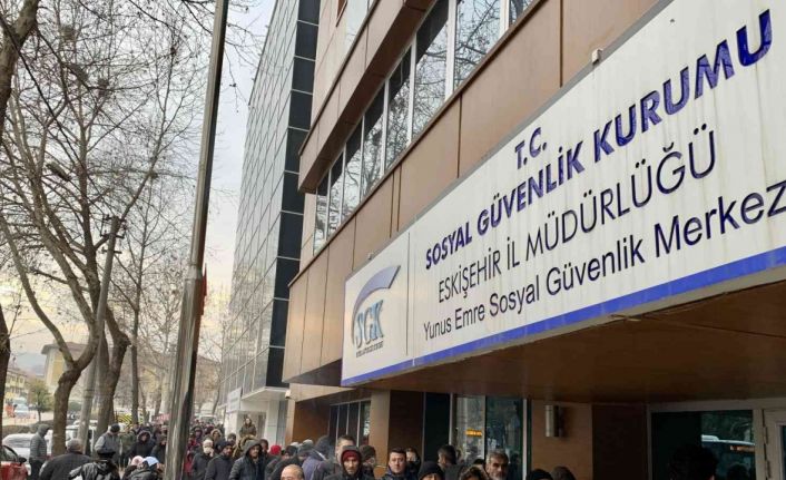 Cumhurbaşkanı Recep Tayyip Erdoğan’ın EYT düzenlemesi açıklamasının ardından Eskişehir’de askerlik ve doğum borçlanma işlemlerini bir an önce tamamlamak isteyen vatandaşlar, SGK binaları önünde yılın son günü de kuyruk oluşturdu.
