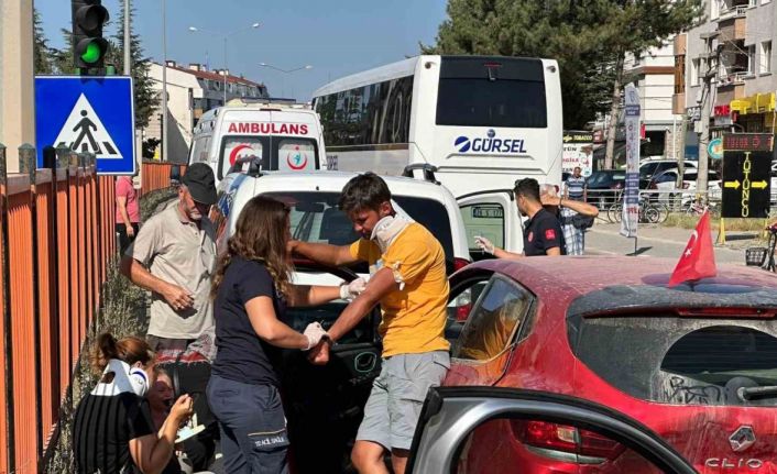 Kaza, dün 16.50 sıralarında Eskişehir-Kütahya karayolu Orhangazi Mahallesi yakınlarında meydana geldi. Edinilen bilgilere göre trafik ışıklarında yavaşlayan 45 AKR 908 plakalı araca, arkadan gelen26 AAN 868 plakalı otomobil çarptı. Meydana gelen kazanın ardından, arkadan gelen ve yavaşlayamayan 26 AEE 754 ile 20 ADL 079 plakalı araçlar da kazaya dâhil oldu. 4 otomobilin karıştığı zincirleme kazada, bazı yolcular hafif yaralandı. Olay yerine sevk edilen sağlık ekipleri, hafif yaralanan vatandaşlara müdahale etti.