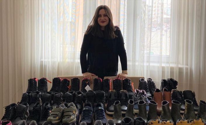 Eskişehirli yardımsever Elif Tezanlar, Hakkâri’nin Ağaçdibi köyünde ihtiyacı olan çocuklara bot yardımı yaptı.